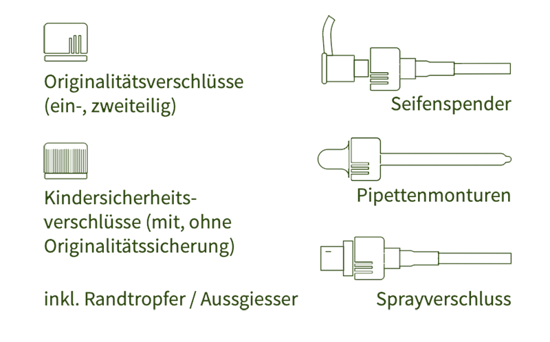 Beim Verschluss haben Sie die Wahl: elegante Tropferverschlüsse und Pipetten in klassischem Schwarz oder schlichtem Weiß. Sollten Sie einen individuellen Farbwunsch haben, bieten wir gerne weitere Farboptionen auf Anfrage an. Auch andere Gebindegrößen sind auf Wunsch erhältlich.