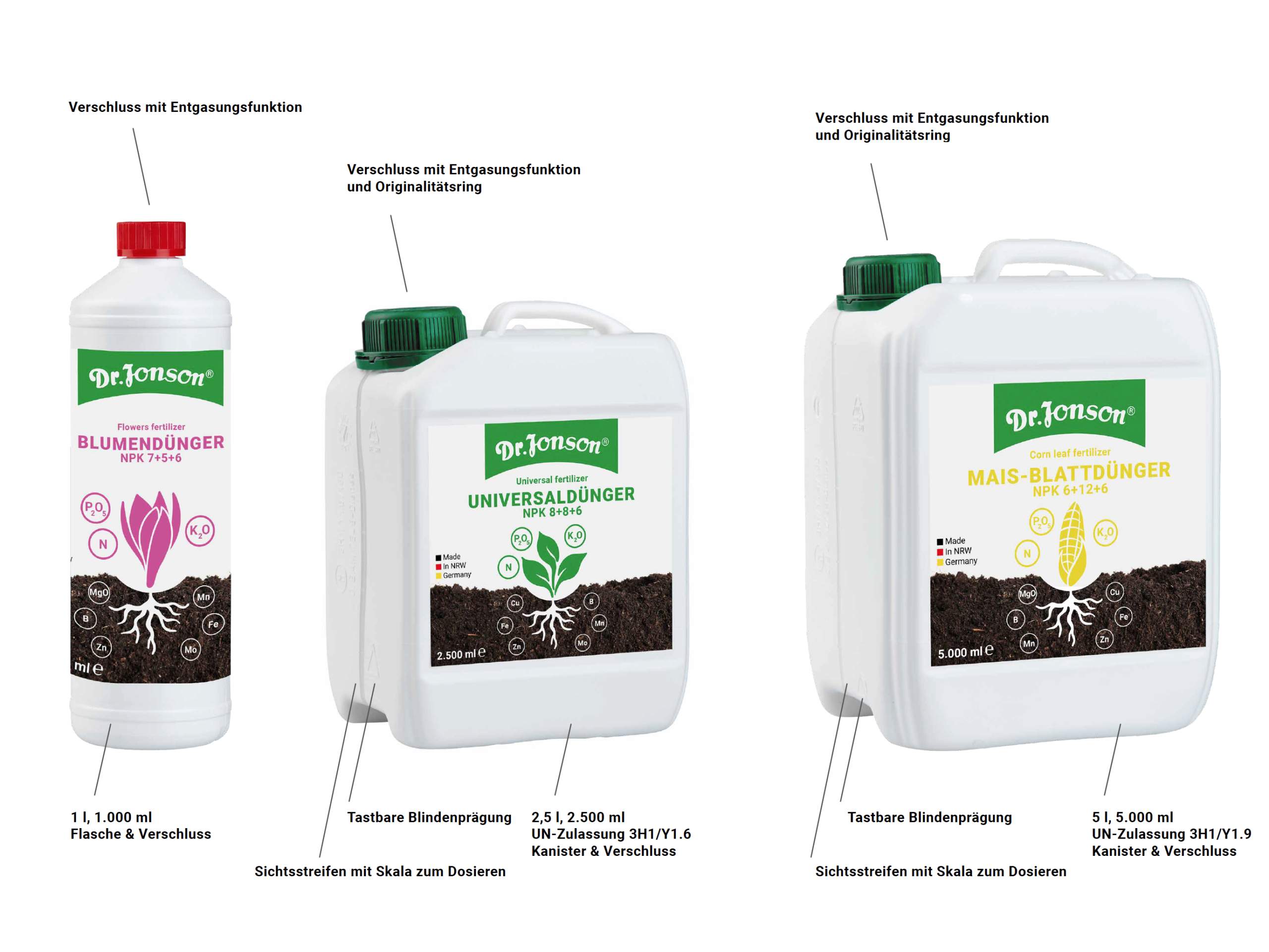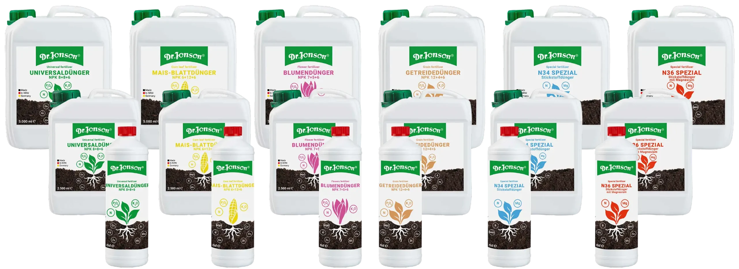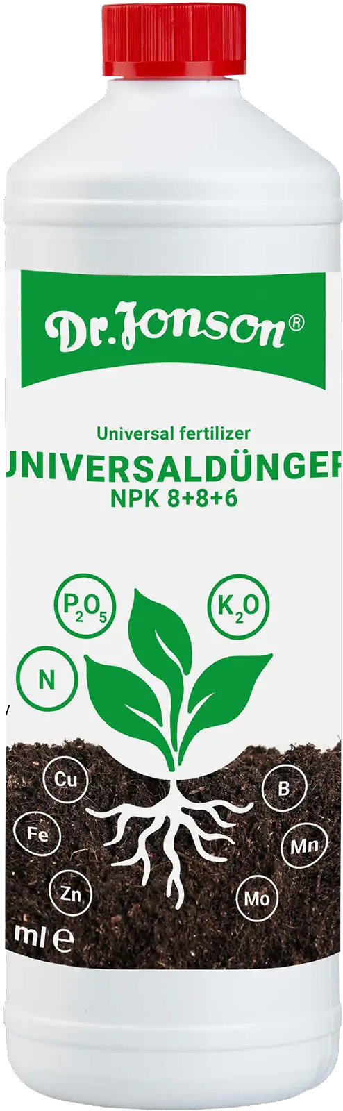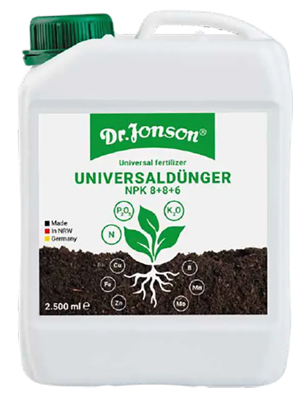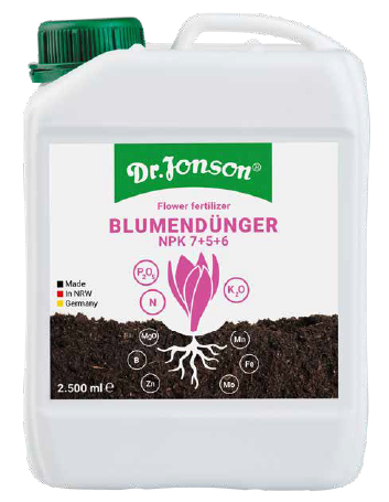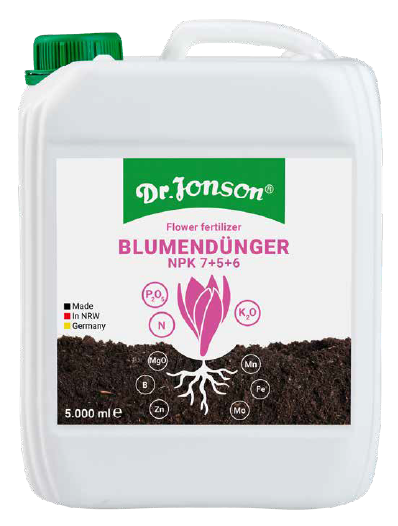 Mit dem Dr. Jonson Flüssigdünger ist es möglich, sowohl eine Boden- als auch eine Blattdüngung durchzuführen. Letztere erfolgt durch Übergießen oder Besprühen der Pflanze. Hierbei sollten sie sich stets an die Dr. Jonson® Dosieranweisung halten. So kann eine ungewollte Salzanreicherung vermieden werden, durch die die Wasseraufnahme erschwert wird.